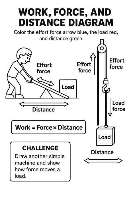 Force Work Distance Worksheet. Web the measurement of work and energy with the same unit reinforces the idea that work and energy are related and can be converted into one another. Web in figure 9.8(a), the worker uses a type of lever to exert a small force over a large distance, while the pry bar pulls up on the nail with a large force over a small distance.