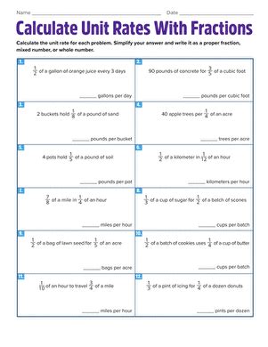 And decimal answers are required. I would stress that you show those forms to students. Web featuring 12 problems that range in difficulty, this worksheet asks students to calculate the unit rate for each scenario, in which at least one of the given numbers is a fraction.