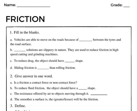 Friction Worksheet For 8Th Grade. (i) the weight of the body and. What experts say is to blame.