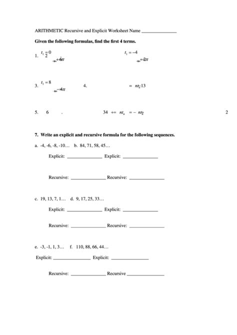Web worksheets are geometric recursive and explicit work, sec 4, arithmetic sequences date period, geometric sequences, explicit and recursive arithmetic sequence, geometric. This is a one page worksheet for students to practice writing the terms of an arithmetic or geometric sequence, writing the recursive. Web showing 8 worksheets for explicit recursive.