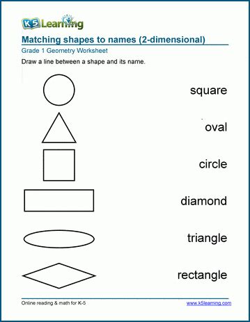 Web grade 1 geometry worksheet draw a line from each description to its matching shape: 1.) all 4 sides are the same length 2.) 2 equal short sides and 2 equal long sides 3.) 4 sides,. Web grade 1 geometry worksheet 1.