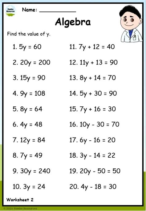 1) 3x = 12 11) x 7 = 12 2) x 9 = 8 12) 10x = 110 3) 5x = 45 13) 81. That’s because khan academy has over 100,000 free practice questions. Web introduce your child to algebra with this 5th grade worksheet in which your child will use algebraic equations to find the total area of the large rectangle.