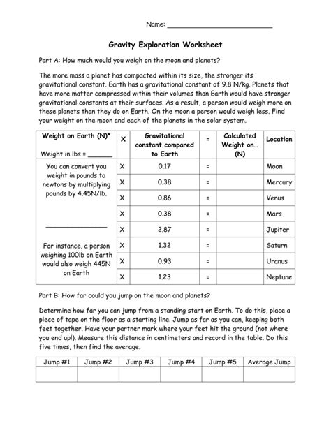 Gravity Exploration Worksheet. Web gravity exploration worksheet part a: How much would you weigh on the moon and planets?