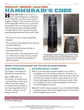 This activity features 5 excerpts from hammurabi's code of laws that students analyze. You will be assessed on your. This is a great activity to.