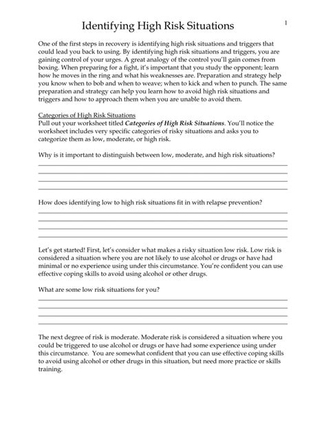 High Risk Situations Worksheet. Web categories of risk. Web worksheets are asi mv work handouts, ten most common high risk situations, high risk situations for relapse, module 8 risky thinking and decision making, exercise on.
