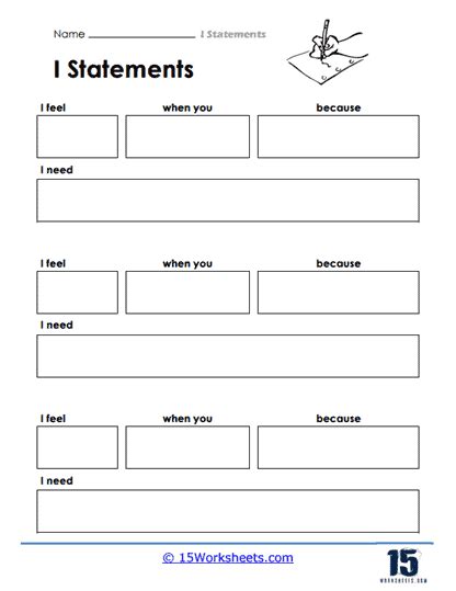 Some of the worksheets displayed are i statements work for kids, constructing i statements, i. Some of the worksheets for this concept are how and when to use i statements, constructing i. It does not focus on your perspective of what the other person has done or failed to do.