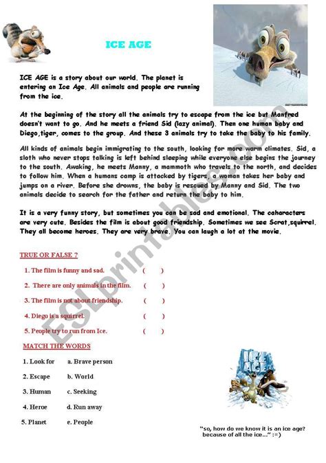 reading activity about Ice Age ESL worksheet by ancient mariner from www.eslprintables.com